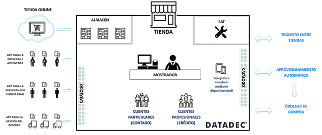 DATADEC presenta su solución actualizada para la gestión integral de las cadenas de tiendas, a través de su solución base de un ERP de distribución, orientadas principalmente a la venta a profesionales de productos relacionados con materiales eléctricos, pinturas, suministros a obras, ferreterías, etc…